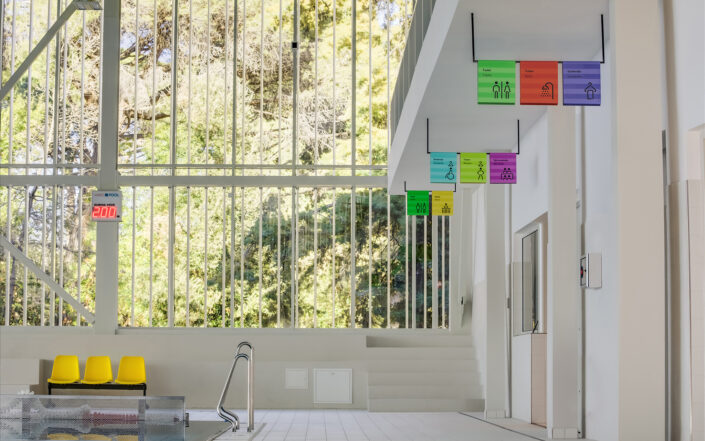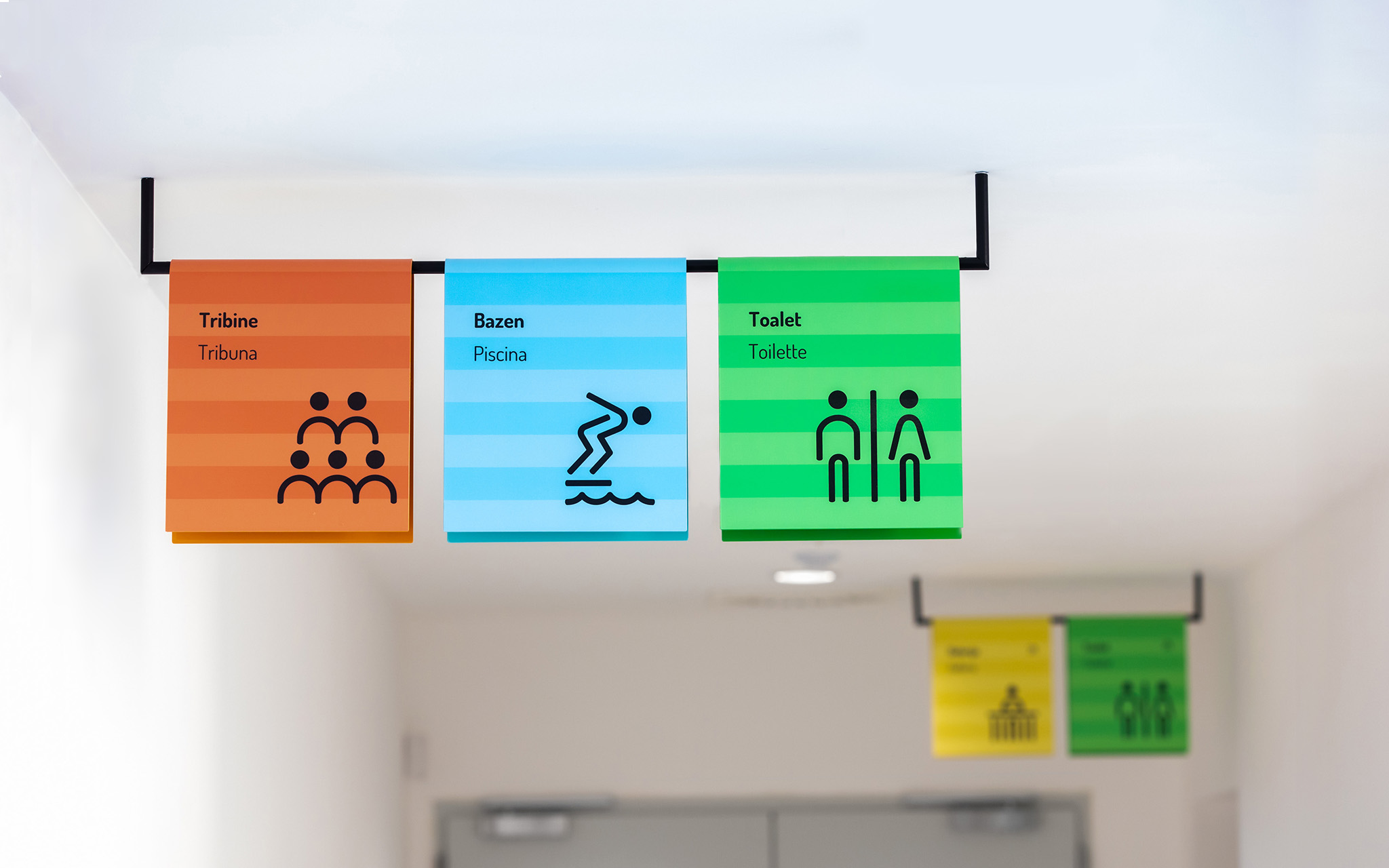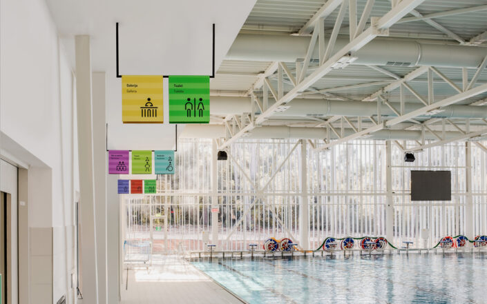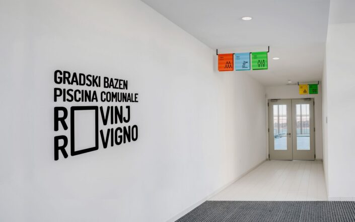 Fotografiranje notranje signalizacije mestnega bazena v Rovinju.